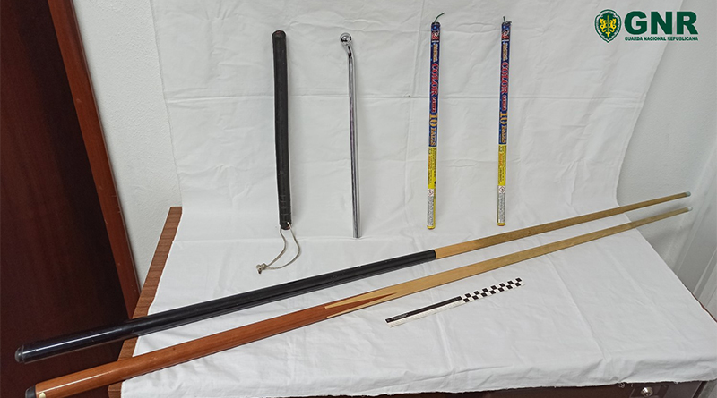 No local do encontro, um parque de lazer, foi identificado e constituído arguido um homem, de 19 anos, por posse de artigos pirotécnicos, dois very light, e identificados outros cinco homens com idades entre os 19 e os 22 anos, na posse de dois tacos de snooker.