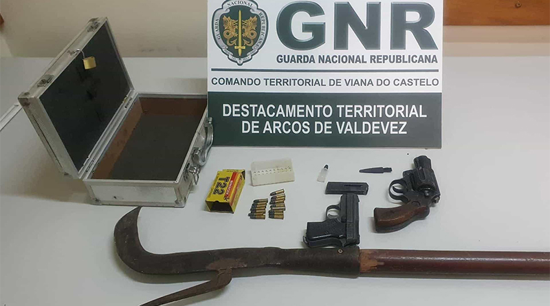 Após a detenção, os militares apreenderam ao suspeito um revólver de calibre 22 mm, uma pistola de calibre 6.35 mm, uma foice e 16 munições.