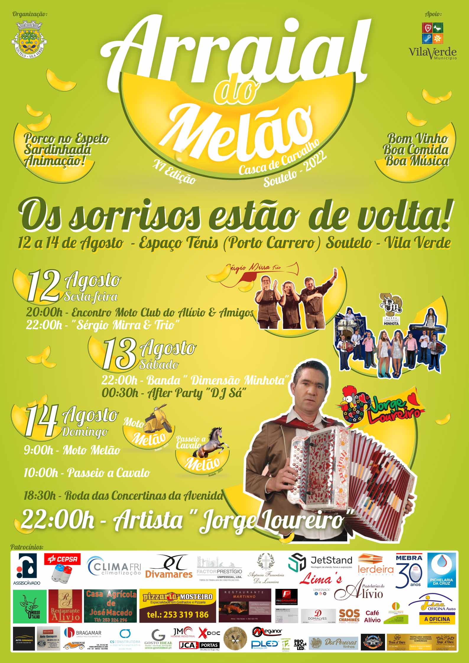 Estão reunidos os ingredientes para uma receita de três dias de festa e animação. O XI Arraial do Melão Casca de Carvalho é organizado pela Junta de Freguesia de Soutelo e integra a programação Na Rota das Colheitas, do Município de Vila Verde.