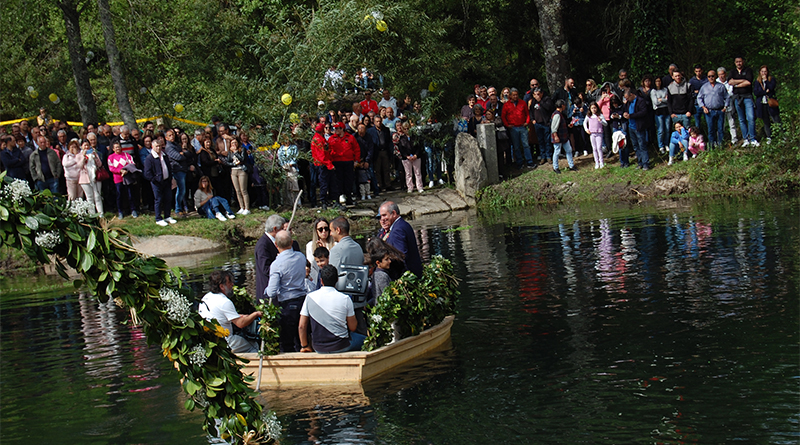 Depois, o sacerdote, os mordomos, as entidades convidadas e a banda de música bem como os profissionais da comunicação social entram nas barcas para a descida do rio até ao lugar de S. Pedro, na margem esquerda do Homem.
