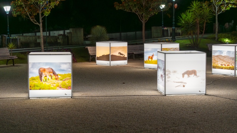 A Praceta Honório de Lima, na vila do Gerês, transformou-se num palco de luz e natureza com a exposição “Garranos do Parque Nacional da Peneda-Gerês”, da autoria do fotógrafo António Cunha. Integrada no Festival Iris, a mostra apresenta-se em cubos retroiluminados, que oferecem um brilho singular às imagens, especialmente ao cair da noite, conferindo-lhes um encanto especial que tem surpreendido e emocionado os visitantes.