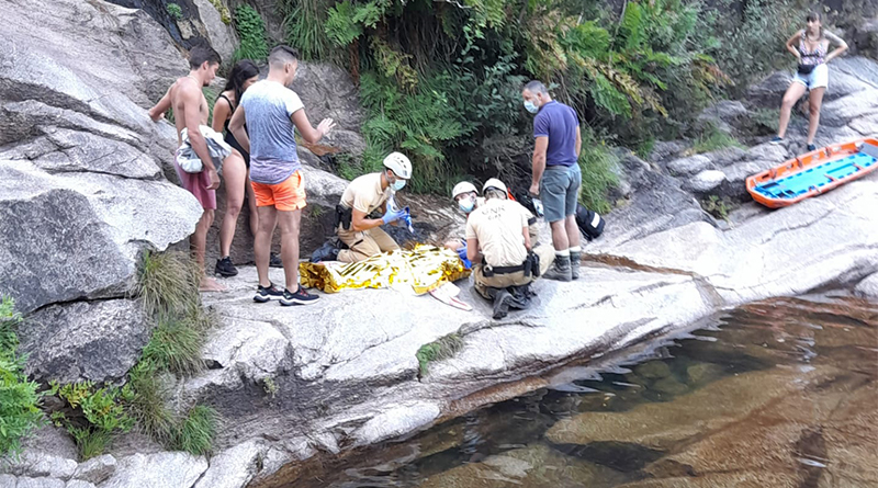 Um rapaz de 14 anos sofreu vários traumatismos depois de cair de uma altura de mais de cinco metros numa cascata na zona da Ermida, Vilar da Veiga.