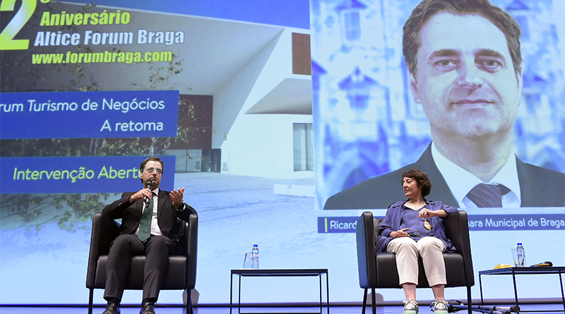 “A requalificação do Altice Forum Braga foi um momento marcante para a Cidade. Este equipamento sofreu uma intervenção transformadora que não se limitou a reabilitar fisicamente o espaço, mas que efectivamente promoveu a sua reinvenção. Passou a ter o maior auditório do Norte do país, a grande nave passou a ser um dos espaços mais versáteis que existem a nível nacional e todo o equipamento foi desenhado para poder corresponder a uma multiplicidade de eventos. Esta transformação posiciona o Altice Forum Braga num referencial de inovação e qualidade tendo em conta os padrões internacionais”, referiu Ricardo Rio, presidente da Câmara Municipal de Braga e da InvestBraga, durante a sessão de abertura da conferência comemorativa “Fórum Turismo de Negócios: a retoma”.