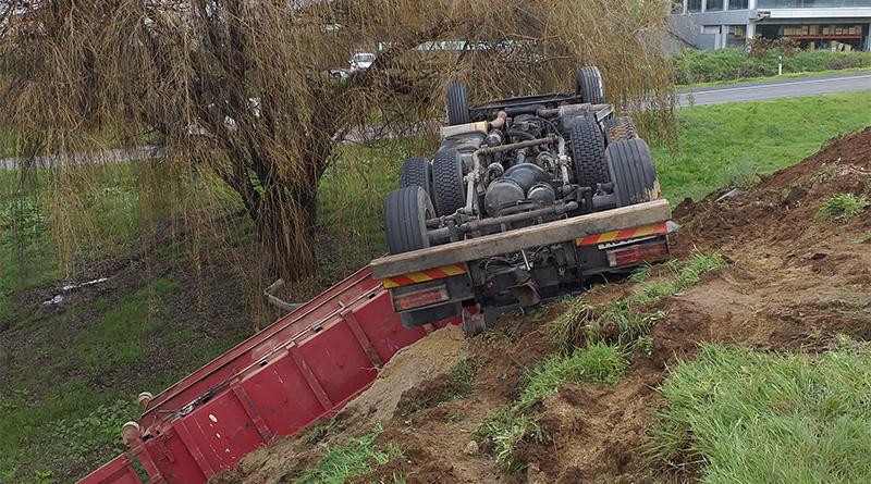 Dois feridos resultaram do despiste de um camião, na manhã desta quarta-feira, na Variante do Cávado, perto do Estádio Municipal de Braga.