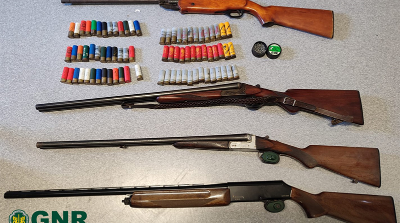 No âmbito de duas investigações por ameaças com recurso a arma de fogo, que decorriam há cerca de nove meses, os militares da Guarda encetaram diligências policiais que culminaram com o cumprimento de cinco mandados de busca, três domiciliárias, uma em veículo e uma em estabelecimento, as quais permitiram apreender diverso material, destacando-se: três espingardas de caça; uma arma branca; uma arma de ar comprimido e diversas munições de diversos calibres;