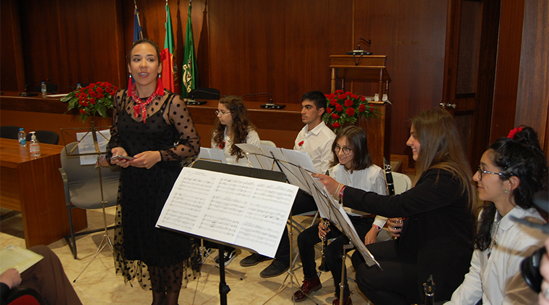 Já no salão nobre os elementos mais jovens da escola de música Luís Capela recordaram canções que marcaram abril e a Associação Fluir Artes Musicais entoou ‘Grândola Vila Morena”.