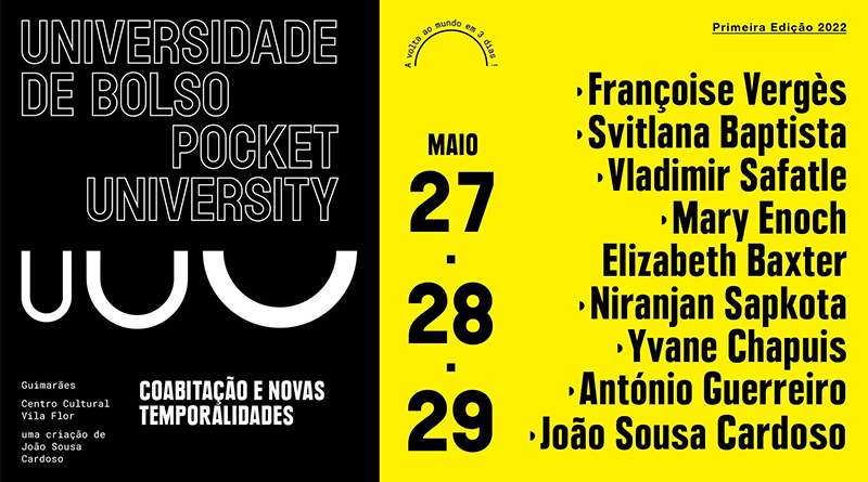 Um novo evento internacional, a “Universidade de Bolso”, conferência criada por João Sousa Cardoso, prepara-se para emergir no nosso calendário cultural, tendo lugar reservado nos próximos dias 27, 28 e 29 de maio no Centro Cultural Vila Flor.