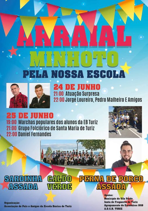 Nos próximos dias 24 e 25 de junho, Turiz recebe um ‘Arraial Minhoto pela Nossa Escola’ que terá animação nos dois dias bem como comes e bebes, como sardinha assada, caldo verde e perna de porco assada. A organização está a cabo da Associação de Pais e Amigos da Escola Básica de Turiz.