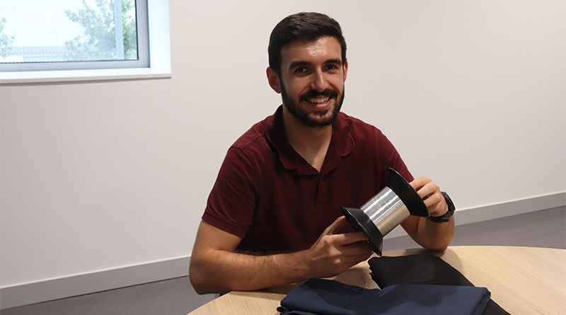O tema que eu escolhi na Continental era desenvolvido em parceria com o CENTI e foi aí que acabei por conhecer o Centro. A tese acabou por desenvolver-se nos dois sítios. Sempre que era produção das estruturas têxteis em si, caraterização da gramagem das malhas, sempre que queríamos fazer a integração do têxtil na borracha e todos os testes mecânicos à borracha era tudo feito na Continental. O CENTI entra aqui mais na vertente tecnológica: nós desenvolvemos a estrutura têxtil com fios condutores e depois no Centi são preparadas todas as conexões, é feito o dimensionamento dos sensores, é caraterizado a nível funcional como é que a resposta do sensor elétrico se comporta perante a temperatura. No âmbito do projeto, foram, ainda, desenvolvidas umas antenas de base têxtil para integrar tudo e que nos iria permitir, sem a necessidade de ter fios, comunicar com o dispositivo, neste caso com o telemóvel. Portanto, CENTI deu-lhe a caraterística inovadora digamos assim.