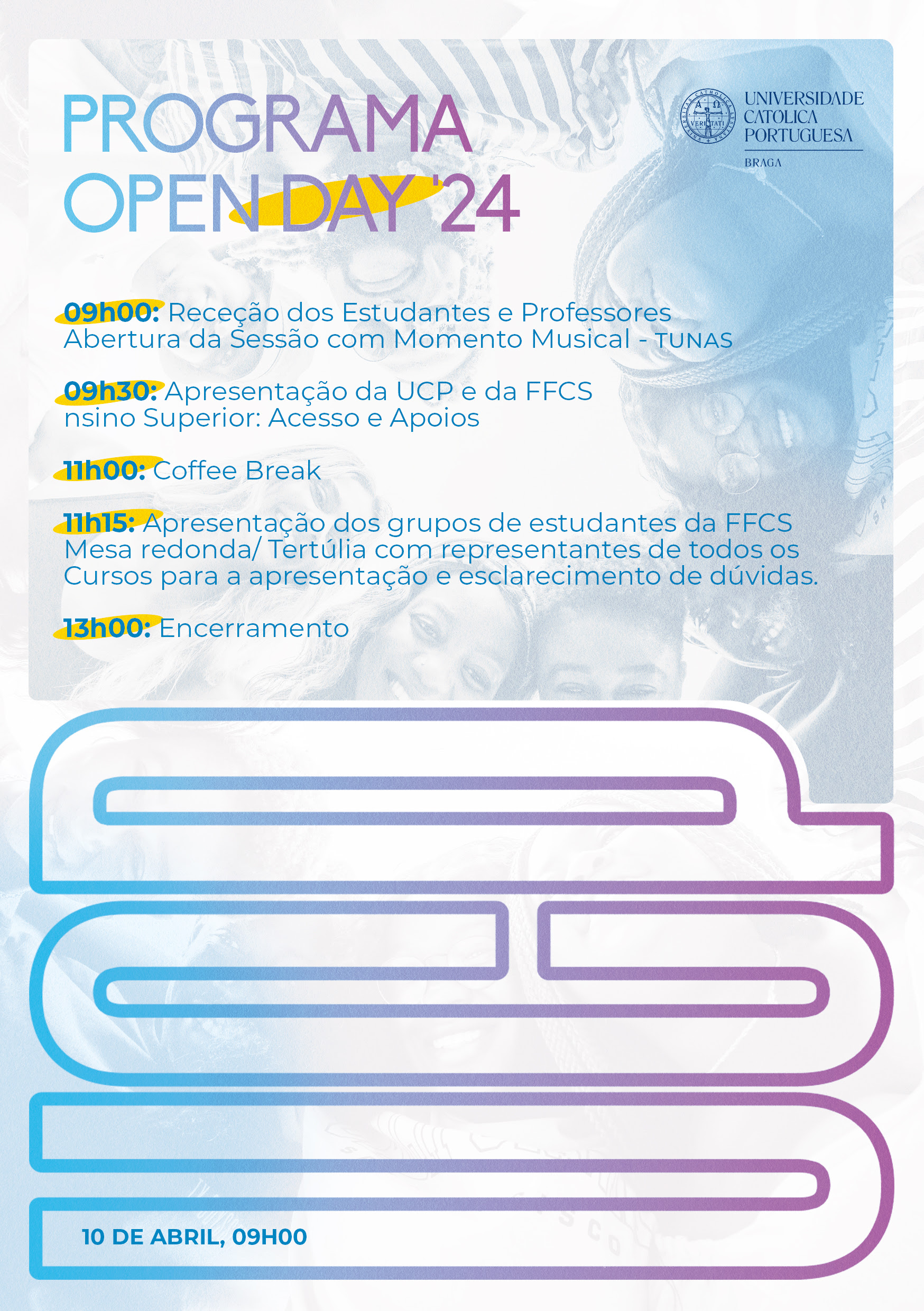 No próximo dia 10 de abril, a partir das 09h00, irá decorrer, na Aula Magna da Universidade Católica Portuguesa (UCP) – Braga, um Open Day, destinado a estudantes do Ensino Secundário.