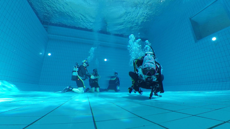 Intitulado “Alterações oculares em profundidades aquáticas”, o trabalho incluiu um estudo experimental com seis mergulhadores, três com experiência de mergulho e certificados e os outros sem experiência, numa piscina municipal. Foram avaliados parâmetros como a refração, a acuidade visual e a pressão intraocular, seja antes, imediatamente após e meia hora depois do mergulho. “Para perceber melhor os efeitos, tentamos superar limites de profundidade e de tempo de mergulho”, refere Miguel Gomes.