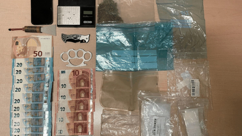 No âmbito de uma denúncia de dano em veículo automóvel, provocado pelo rebentamento de um petardo, os militares da Guarda deslocaram-se de imediato ao local, onde localizaram e intercetaram o suspeito. Durante as diligências policiais foi efetuada uma revista pessoal de segurança, que resultou na detenção do indivíduo por posse de arma proibida e na apreensão de uma soqueira; diversas folhas e sumidades de canábis; artigos relacionados com a preparação e embalamento de estupefacientes; uma balança digital;