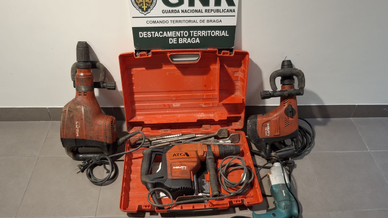 No seguimento da investigação foi dado cumprimento a uma busca domiciliária, no decorrer da qual foi possível apreender três martelos pneumáticos elétricos; um berbequim e um telemóvel.