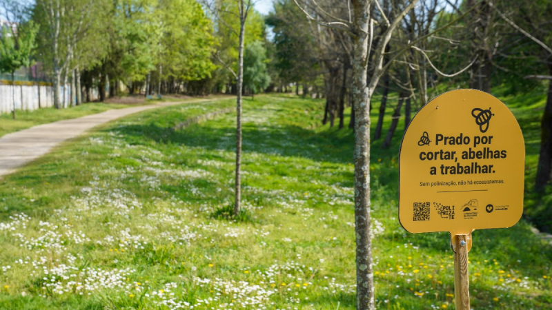 As placas com as mensagens “Prado por cortar, abelhas a trabalhar” e “Não cortamos para protegermos os polinizadores” já estão visíveis em diferentes pontos do território, alertando para a razão desta intervenção reduzida.