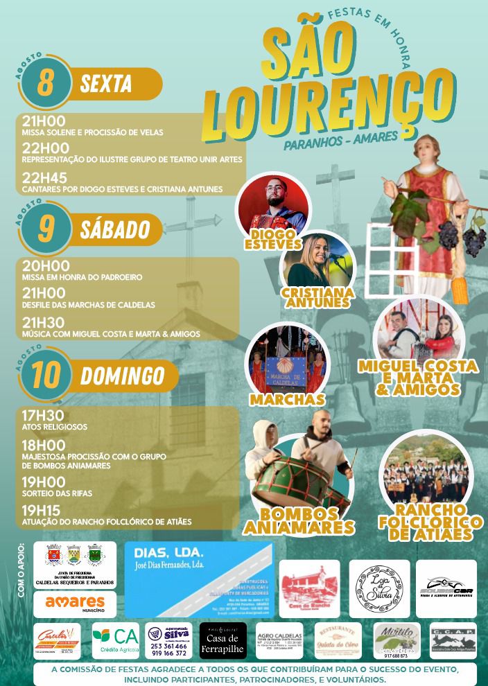 A freguesia de Paranhos, em Amares, celebra o seu santo padroeiro, S. Lourenço, de 8 a 10 de Agosto com música, teatro, marchas, folclore e atos religiosos em destaque.