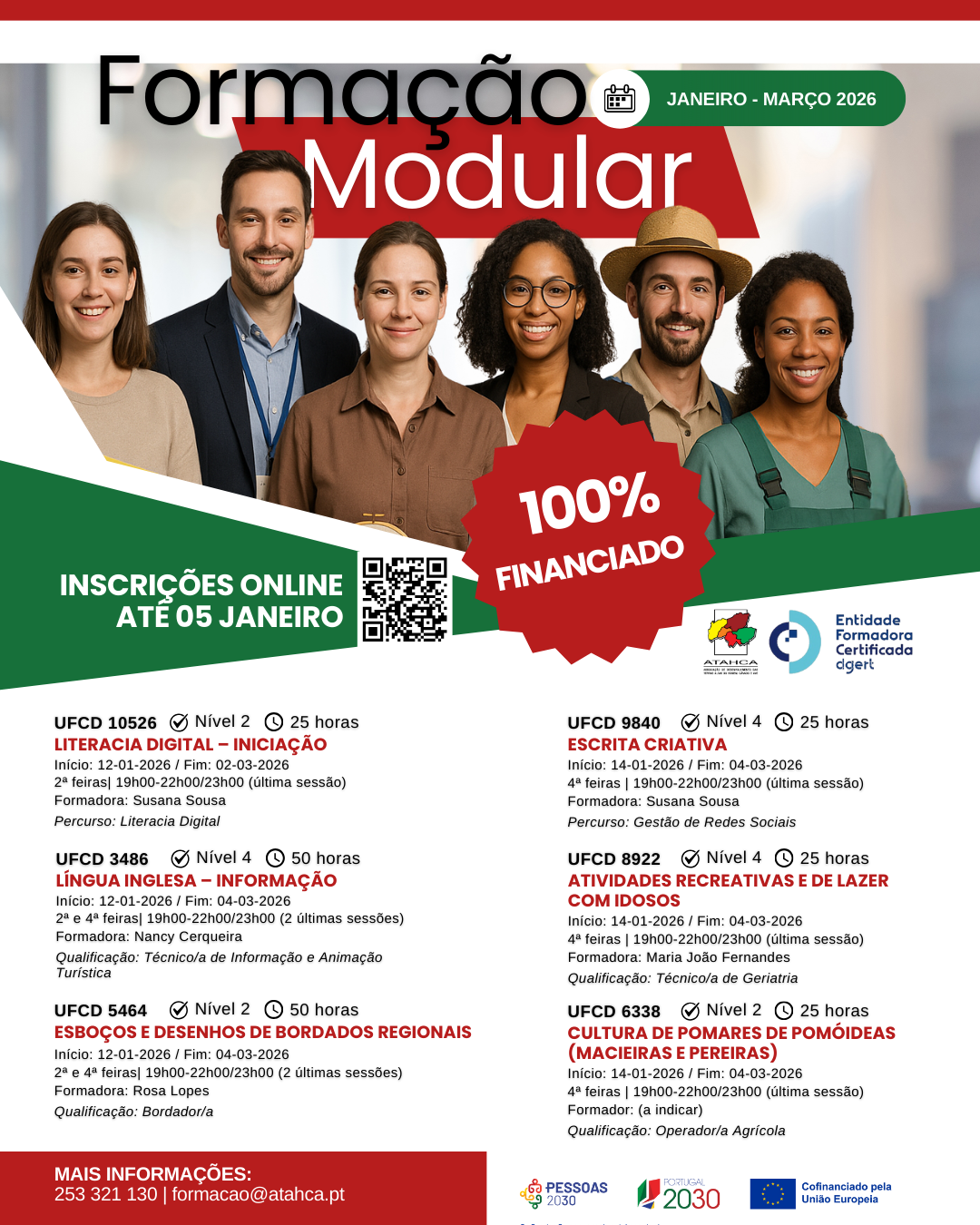 A ATAHCA vai dinamizar, entre janeiro e março de 2026, um novo ciclo de formações modulares certificadas e 100% financiadas, em regime presencial, na sua sede em Vila Verde.