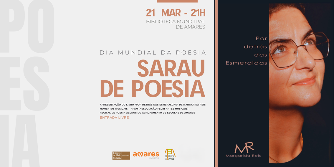 Para comemorar o Dia Mundial da Poesia, a Biblioteca de Amares organiza um Sarau em que o destaque principal é a apresentação do livro ‘Por Detrás das Esmeraldas’ de Margarida Reis.