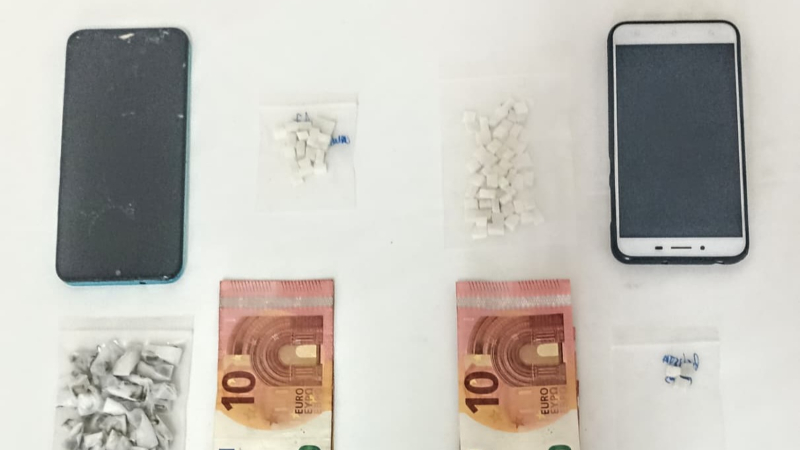 No cumprimento das diligências, resultou a apreensão de 100 doses de heroína; 96 doses de cocaína; 65 € em numerário e dois telemóveis.
