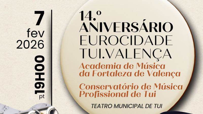 Minho Eurocidade Tui–Valença celebra 14 anos com um concerto que une... O Teatro Municipal de Tui será o cenário, no próximo sábado, 7 de fevereiro, às 19h00 (PT), de uma celebração... POR Pedro Antunes Pereira 02/02/2026 0 COMENTÁRIOS